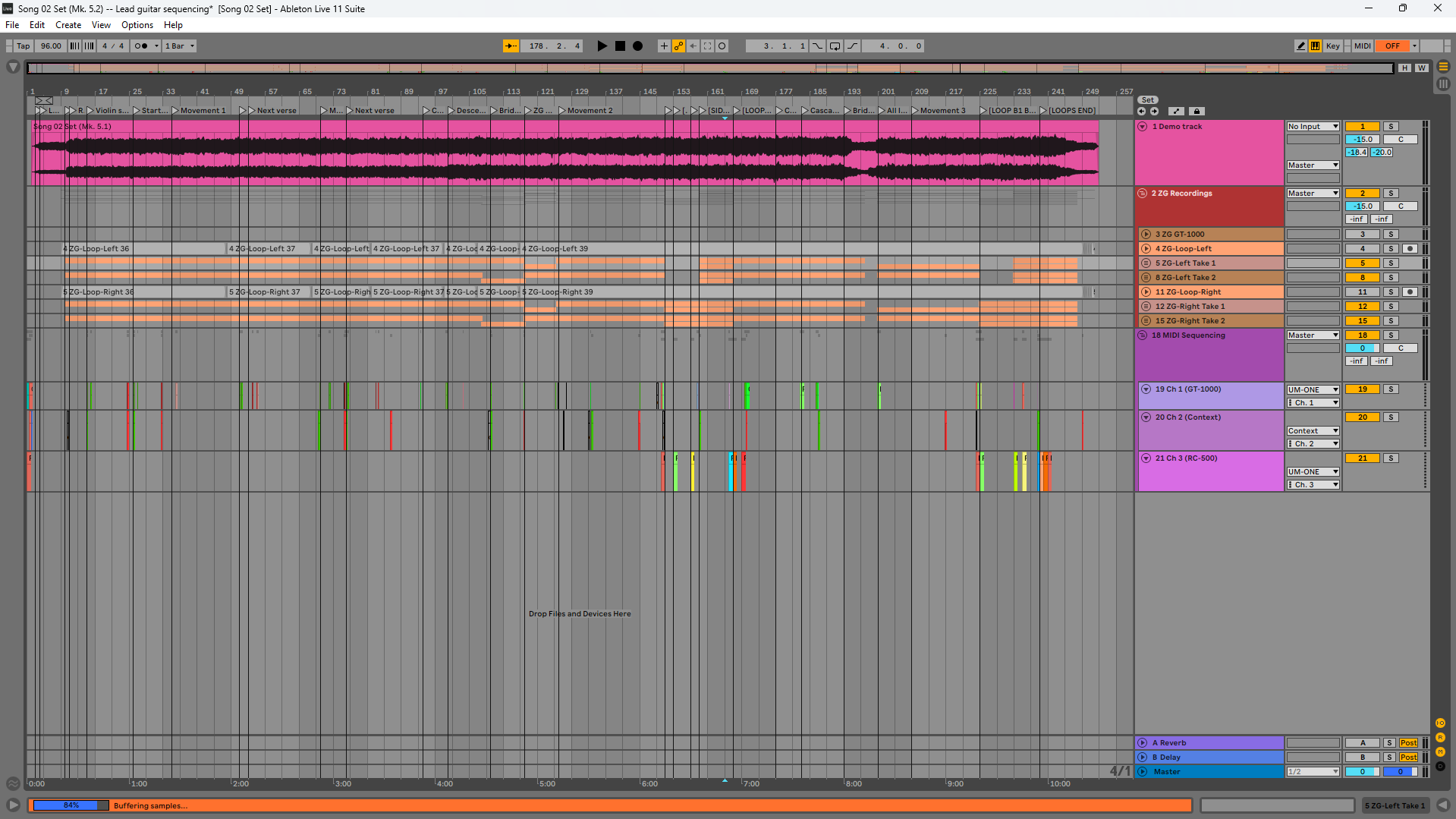 In the end, since the loops I needed to create were distorted, the artifacts had a negligible impact — and I also managed to figure out how to not only automate my use of the RC-500 but all the other pedals on my board as well. This is why see a laptop computer to the side of me while recording guitar: it is synchronizing and commanding all the pedals on my board. The whole thing is a bit clap-trap, but it worked and that’s all that matters. I’m nothing if not a hacker — which requires relatively little theoretical knowledge in comparison with practical knowledge… that’s how I’ve been writing (or rather, engineering) all of this music!