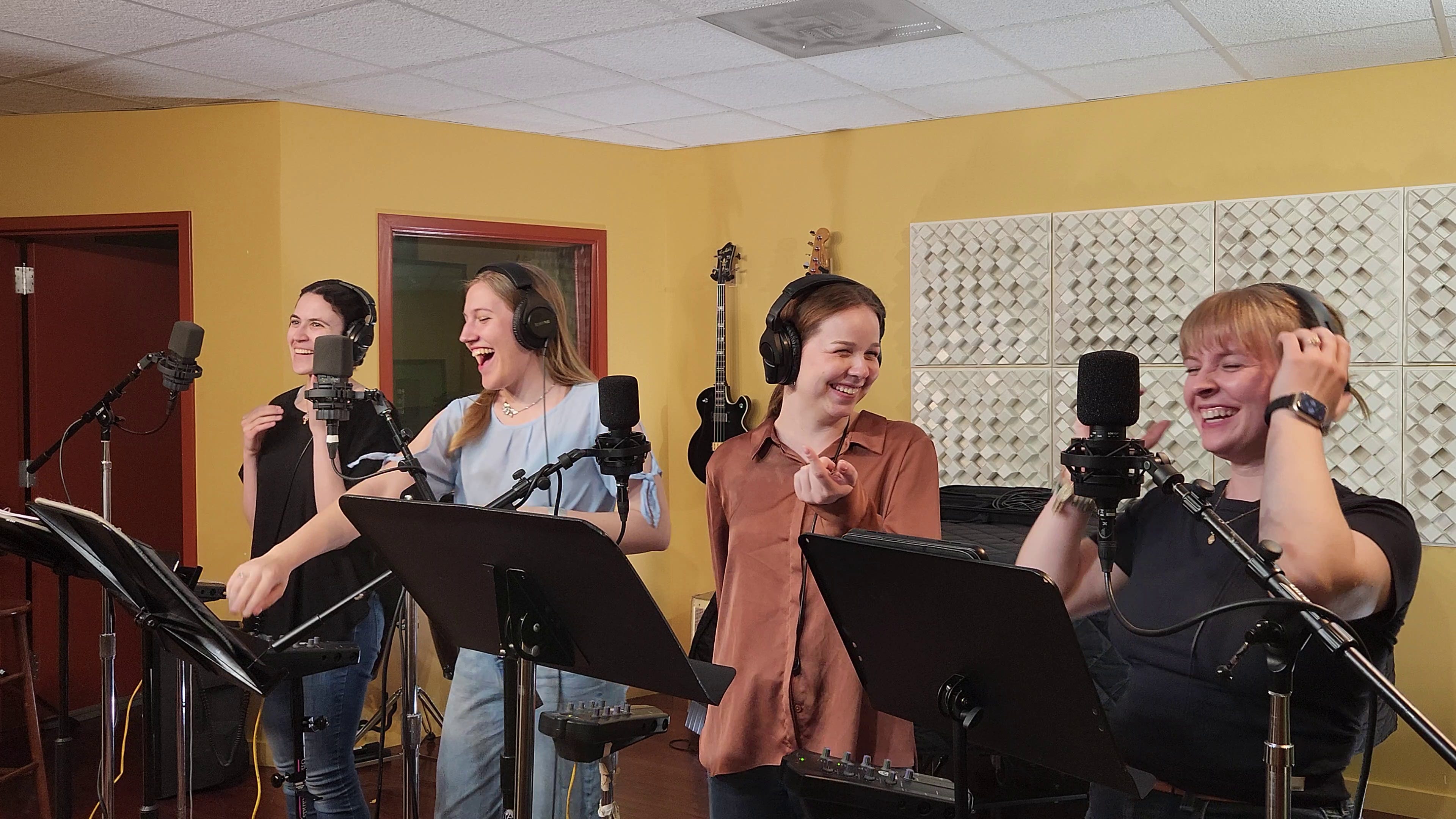 One issue I was concerned about while recording the audio was separating the individual vocals enough so that we could process them individually as needed. If I were to do this again I would avoid having all the singers in the same room, but once you mix them into the backing track the bleed-over tends not to matter. We have not done pitch-correction yet, so I’m waiting to see how that’s effected by the bleed.