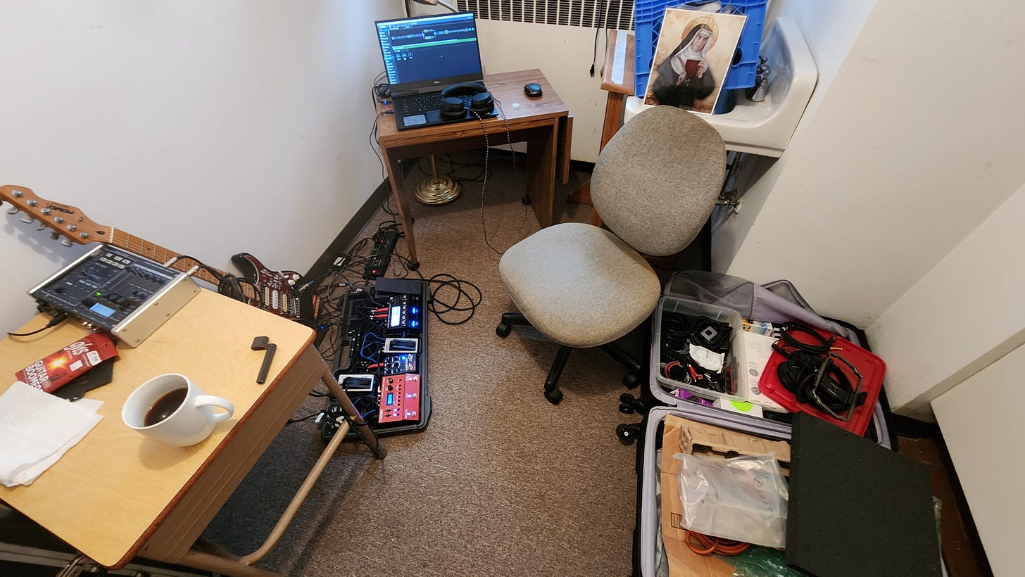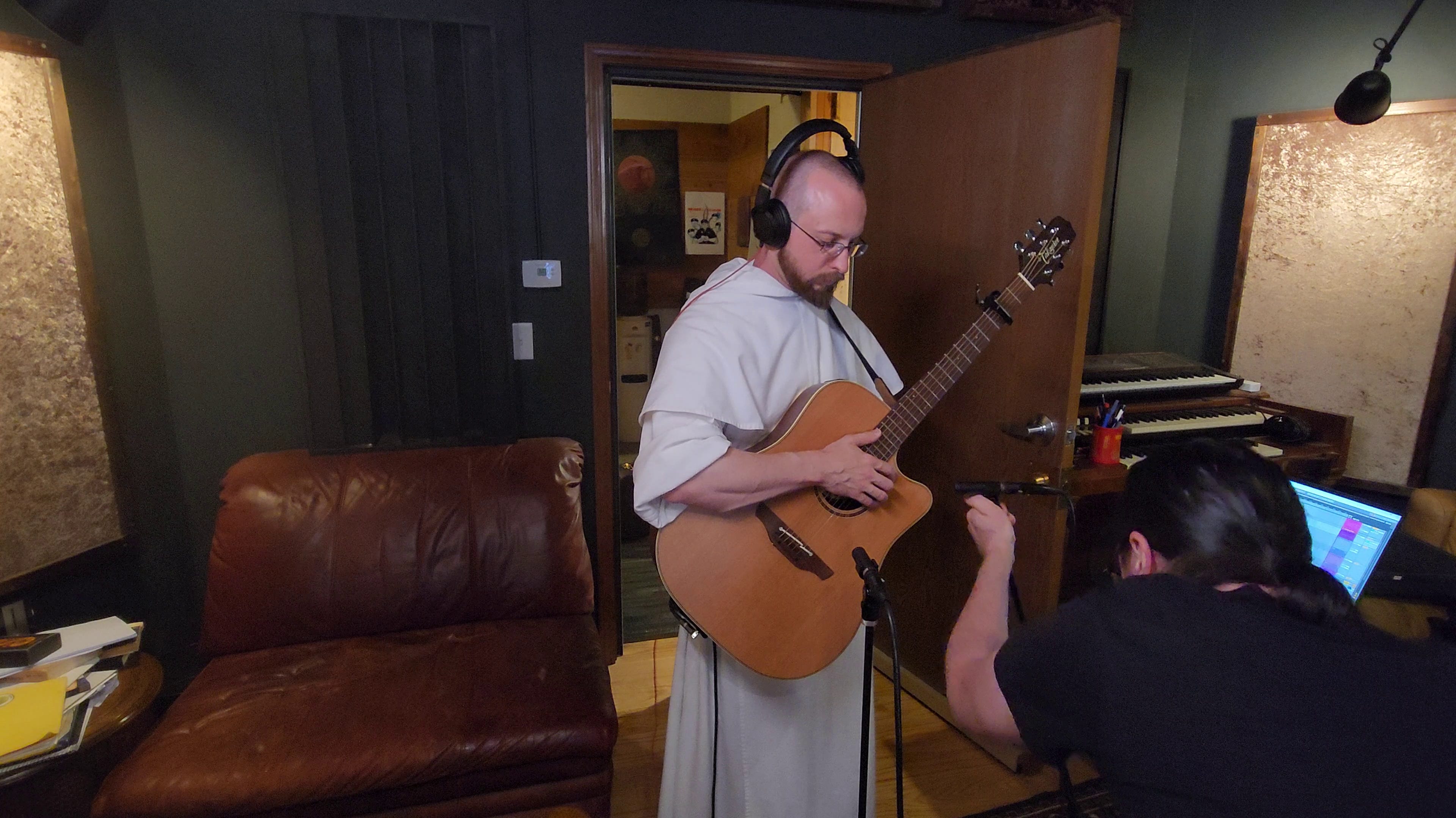 My move to Bloomington required traveling back to the Twin Cities to grab the rest of my stuff from the Dominican community there. A friar in studies normally retains assignment to his former community as part of the Order’s governing structure, but practically it also provides a stable home-away-from-home in the midst of a temporary assignment. Returning to the Twin Cities gave me the perfect opportunity, of course, to record A/V with the bodacious Adam Tucker at Signaturetone Recording, with whom I worked previously and who would be the primary recording engineer for the song.